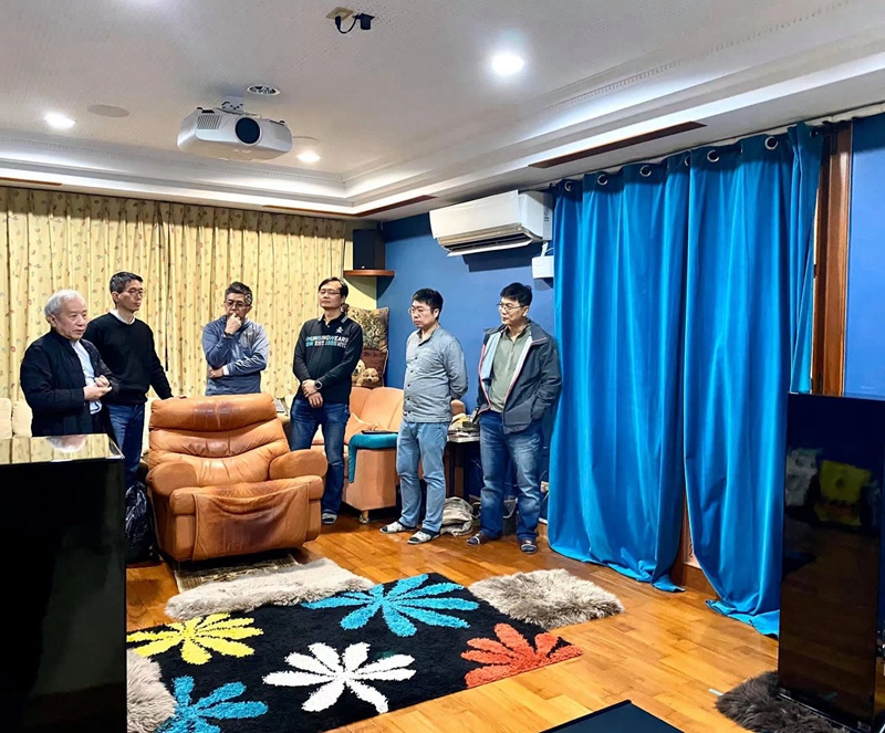 隔天彭先生在社群分享心得:「 昨天感谢蔡老师,师母和侯老师到新竹的两场家访(幸福社员蔡孟志,彭江仁),我的系统是原本呈现的声音在60Hz以下量感会急速掉落,在30Hz附近又有共振的恼人轰声,之前无法克服Elac音箱的充沛低频能量,如脱缰野马,自行在音箱脚座底下垫羊毛地毯,下方低音出口塞泡棉,昨天在侯老师主调,蔡老师(现在应该称蔡校长了)辅导和最后确认下,把所有不属于原厂的配件全数去除,重新摆位和超低音衔接,恼人的轰声瓮声不见了,平衡的音乐表现让Elac音箱被驯服了,让听音乐到达享受和感动的境界。今天把熟悉的音乐拿出来复习,从老师的「龙源之声」开始听,充沛的低频量感多而不轰,听第一曲〈打虎上山〉,〈呼唤〉曲目的绵密高低音弦乐和定音鼓,〈鸿雁〉的音箱低吼声,都有以往不同的听觉感受,让人欲罢不能的听完整张专辑。再听Dali CD4,〈神鬼奇航〉整首曲子的超低频稳定又源源不绝的让身体和座椅都跟着音乐舒服震动着,配上宽广的音场和紧凑的节奏,一整个舒畅。整个下午把Tutti, Royal Ballet, Joan Baez的西班牙演唱会,欲罢不能的聆听欣赏。昨天老师们下午三点来到新竹,离开我家时已接近晚上十点,还要驱车回台北,真是感谢老师们的热诚和无私奉献。蔡老师希望新竹学员可以多切磋交流,如有疑难杂症,老师再找机会南下解惑。边听音乐的同时,我感恩我何其有幸,在工作和音乐欣赏的道路上,都遇见真正的强者和领导人,一位是台积电创办人张忠谋先生,另外一位则是蔡克信老师,谢谢他们的无私的付出和贡献。昨天侯文智老师也展现蔡老师的真传,把孟志和我家的系统整个境界提升起来,同行的学员亲身体验后,马上向侯老师登记家访,在一生的音乐欣赏道路上,做最适切完美的安排。」