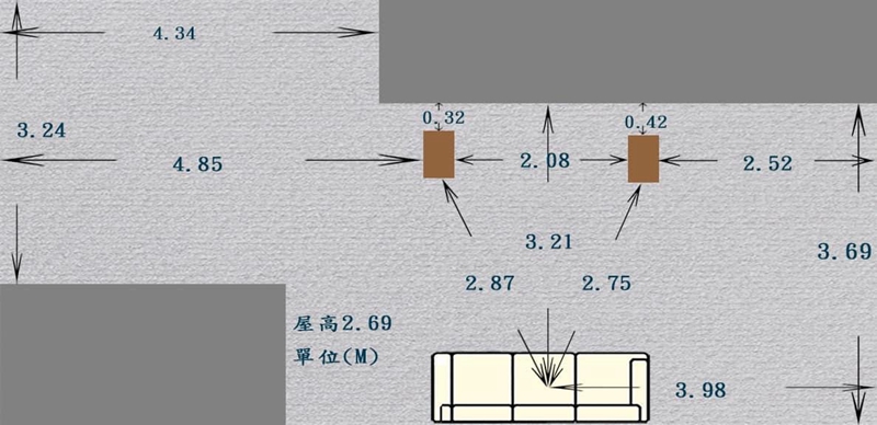 「1. 左音箱向外3 cm以修正左偏并再提高音场。2. 左侧低频较少,音像仍左偏,将左音箱向后两次共4 cm。3. 音像仍左偏,右侧低频稍多,将右音箱前移2 cm。4. 左音箱外移1 cm再次修正左偏音像。5. 低频稍多,乐器形体欠清,将左右音箱前移1 cm,完成主音箱摆位。」