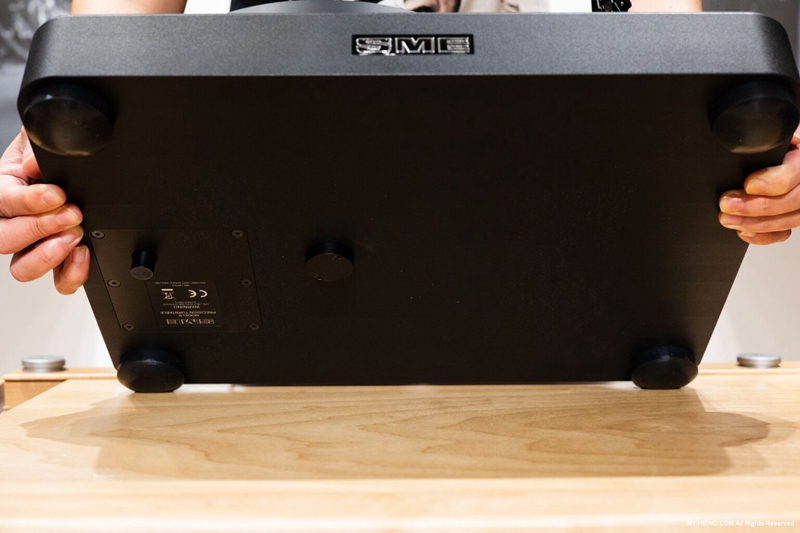 入门款即使用分体式电源,不得不说这设计真好看,这是SME的新型电源系统,与最高阶的唱盘M-60相同设计,除了33转与45转的切换外,只要长押上面的圆形旋扭约两秒,就可微调转速,精度达0.01 rpm。
