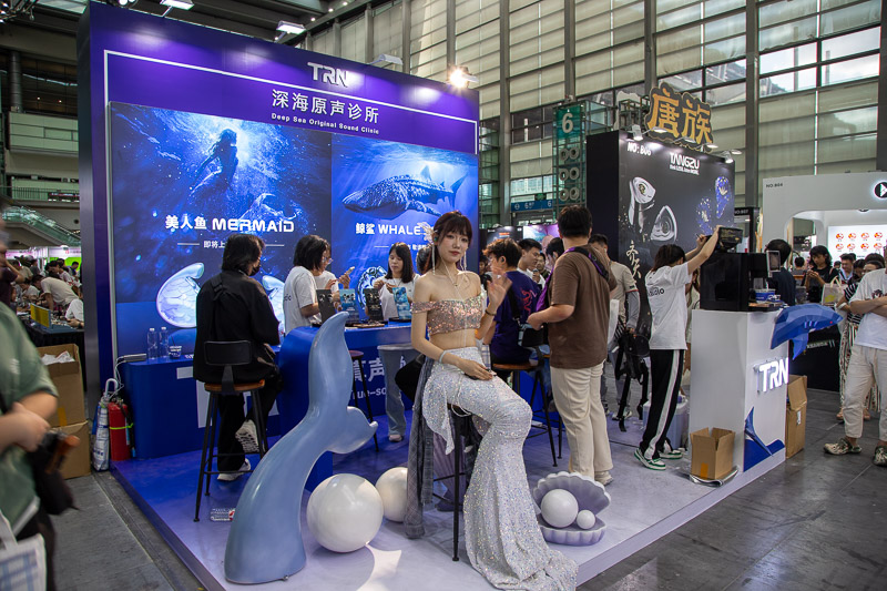 本届迁入会展中心标准展馆后,展区整体开阔,品牌以更成熟的“场馆式”“特装式”搭建出沉浸感:入口导流清晰、功能分区明确,既保留往届“咖啡、Cosplay”等轻社交元素,也提升了器材演示的声学与动线细节,观众的停留与体验更连贯。