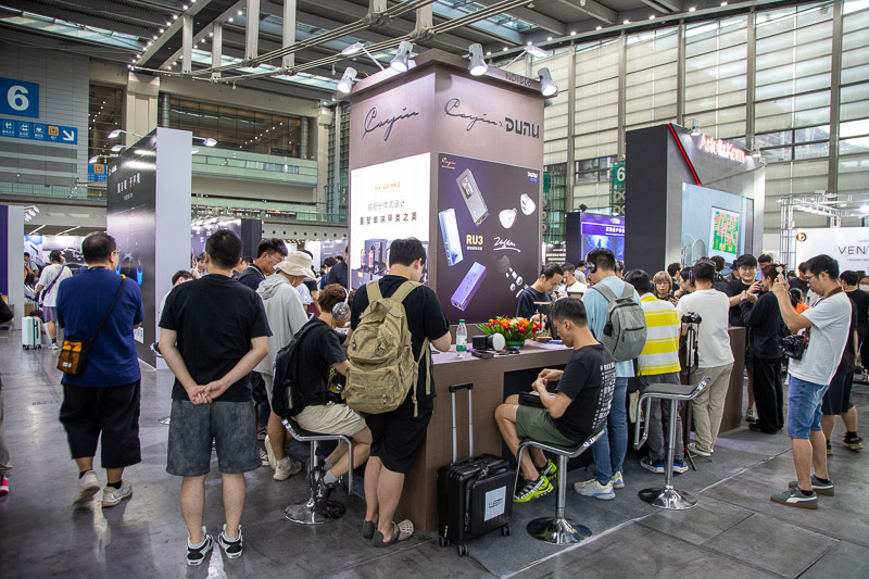 展会首日,“2025飞傲秋季新品技术交流会”阐述了飞傲/翡声/雪漫天三大品牌的差异化产品定位,在飞傲的走18个年头,风华正茂的少年一口气发布了温拿/Warmer R2R 解码+胆缓冲器、DM15 R2R便携CD播放器,以及M27年度旗舰便携HiFi播放器……等10款震撼新品,并预告今年还会带来更多惊喜。水月雨在馆内举办“2025秋季发布会”,借品牌十周年一次性发布多款重磅新品,涵盖头戴、真无线与解码耳放等矩阵;其中平面磁头戴“天空之城 Laputa”以开放式结构与轻量化碳纤维梁引发关注,官方定价4,999元。此外同台举行新品分布的还有S.M.S.L三木双林、HiBy海贝音乐、DUNU达音科……此类“展中开发布会”的密集排期,为展场带来更强的话题与人流脉冲。
