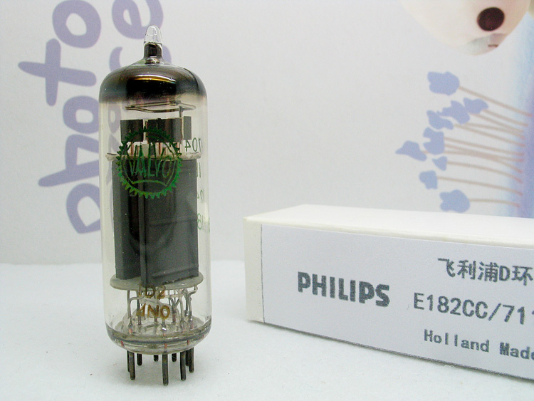 早期飞利浦D环E182CC电子管一支,打绿色富豪标,暗码:ㄓN0 成色新净,测试极佳,实物如图。