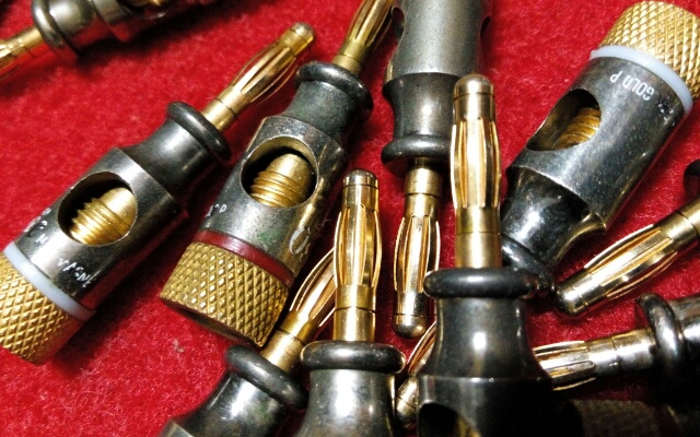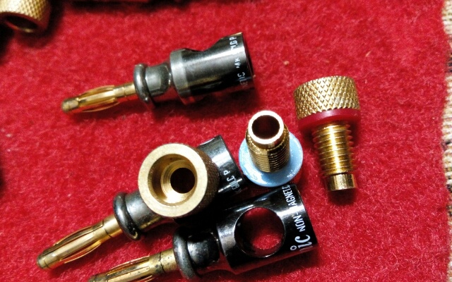 进口镀24K金喇叭线插头,一套4个,成色见图。淘宝:http://item.taobao.com/item.htm?id=531297086755