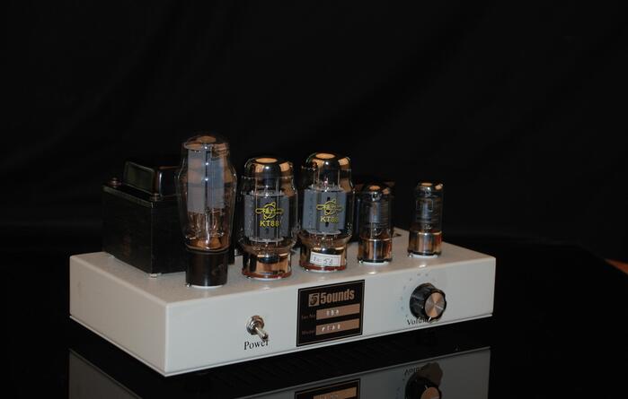单端甲类外露变压器,简洁明朗的外观,纯铜高品质电源变压器与输出变压器,胆整流,电感电容LC滤波,前级推动线路五极管推动线路,老烧都知道,五极管音乐味浓郁,高频纤细甜美,低频扎实有力,中频真实有厚度,使用全新桂光KT88后级管(好声音),后级线路使用固定偏压,无阴极电阻,所以避免零件发热,输出效率高。