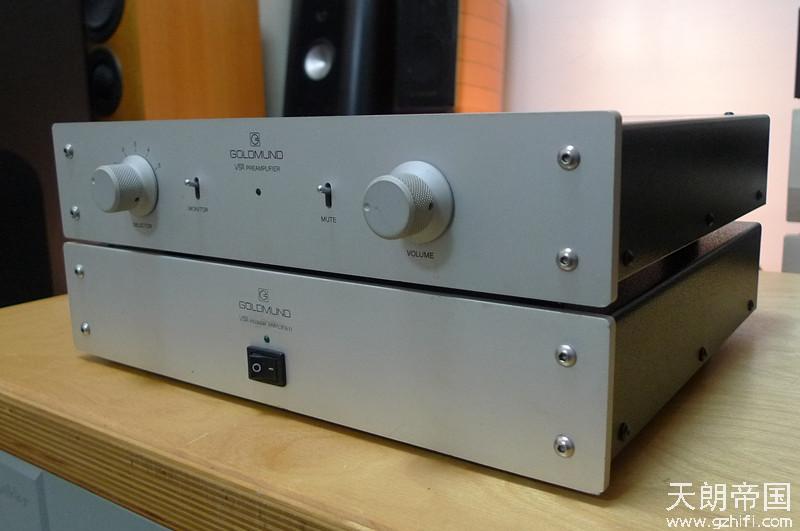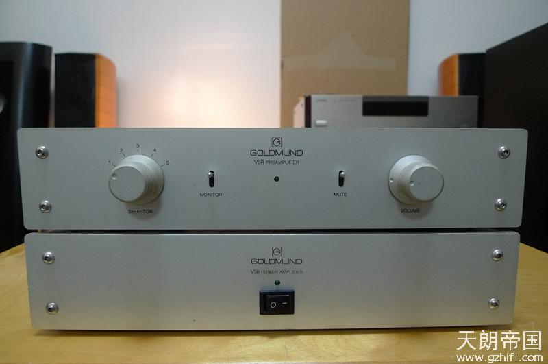 高文GOLDMUND VSR前级+VSR后级50W,机身由瑞士劳力士代工,现在这个价位能享受到HIEND级别的高文的优美音色,性价比极高。声音贵气 流畅 真实 空气感优秀,无论音色、音质、控制力、声音的平衡度都很出色,据台湾CK讲VSR要好过2.3! 因为VSR内部用料十分足采用的是分立元件和模块设计的,而2.3采用集成电路设计的。