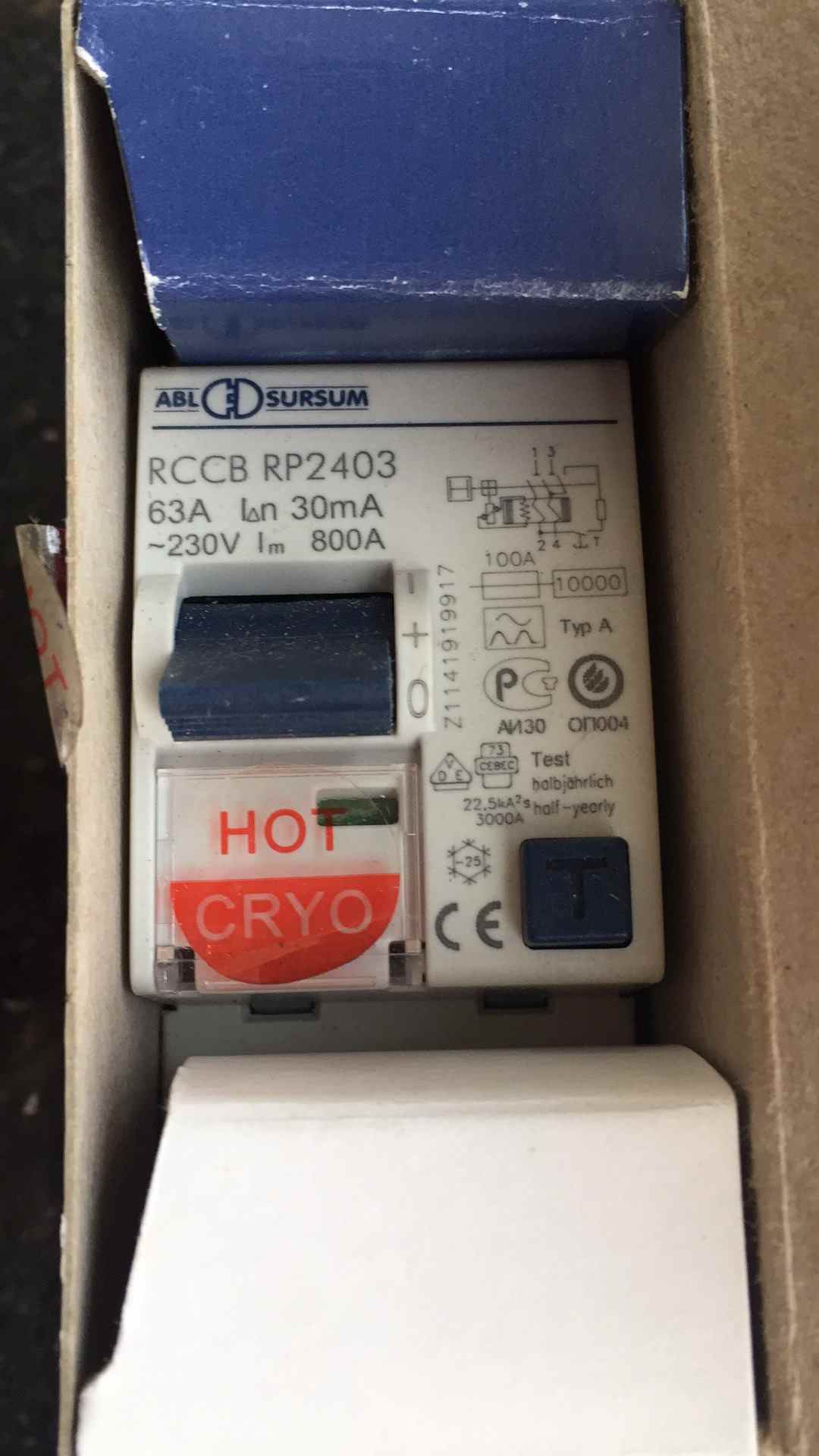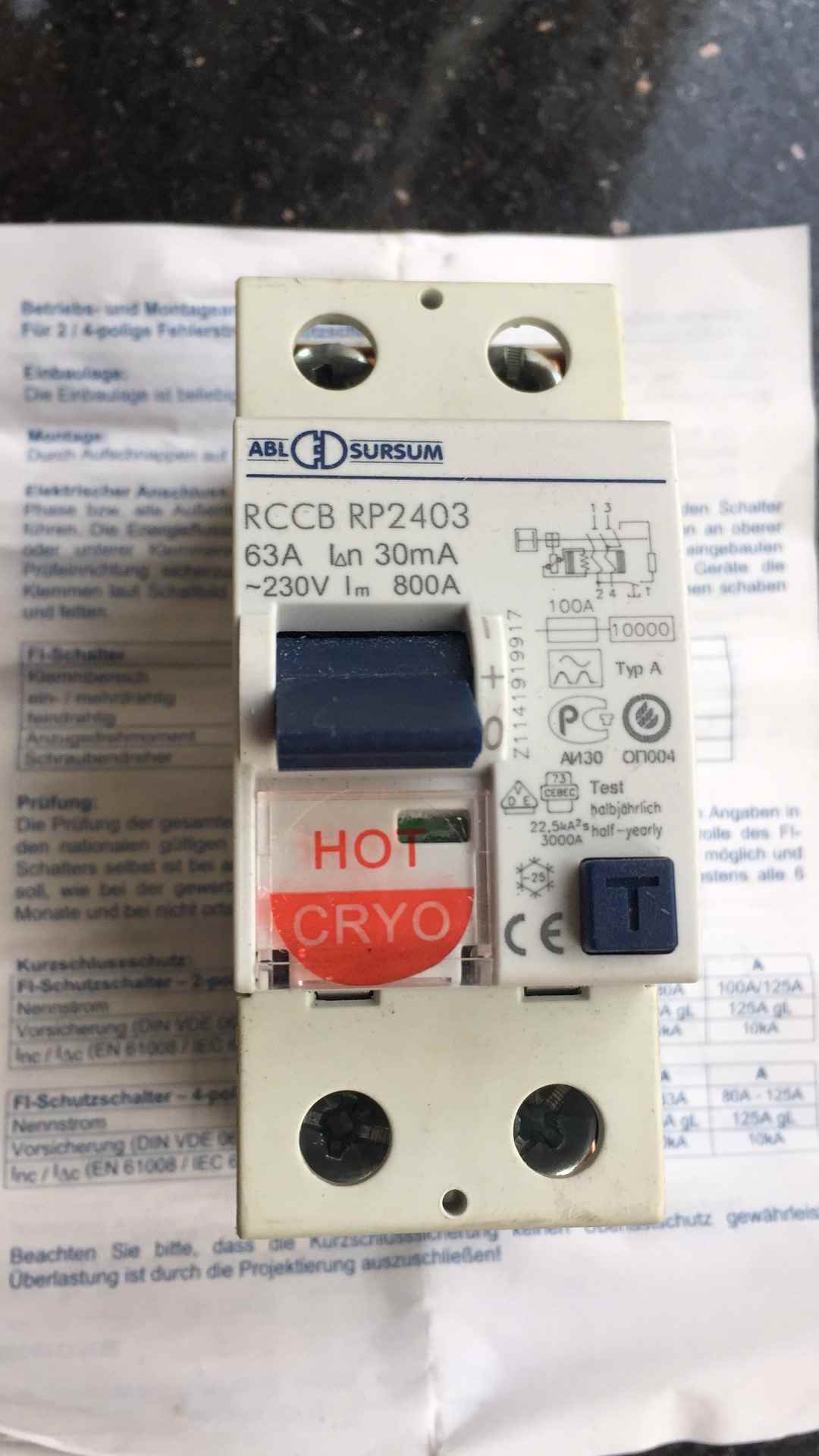 德国ABL Rhodium铑白金冷冻版空开漏保,ABL 2P漏电保护开关型号RP2403 63A,原包装一手用家保真。