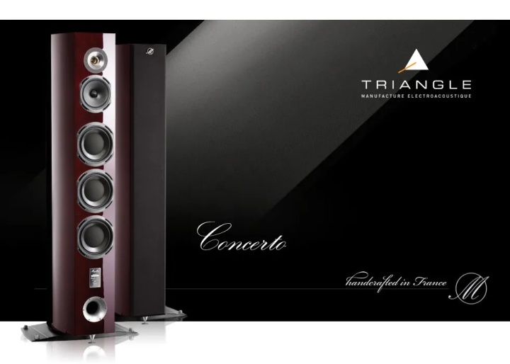 Concerto 的外观奢华,光是音箱外层就有10层涂漆,层层都经过精细打磨处理,让表面如同钢琴镜面般光耀,隐约透露出桃花心木饰板的漂亮花纹,非常高雅。更有不俗的内在,启用全新的研发设备与技术,例如电脑3D模拟设计、雷射分析测量仪等先进设备,让Triangle得以进行更严谨、更精密的分析与设计,因此从单体、分音器到箱体的设计,还是声学、机械结构的研究,Triangle都可以不必假手他人。全新落成的大型无响室,高度达6米,即便是Magellan Grand Concert也可以在里面进行测试。