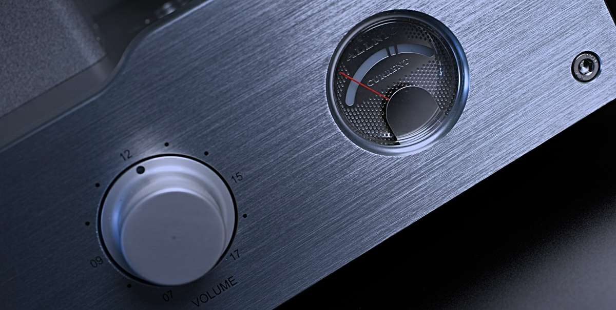 前面板有两个旋钮,输入选择器及音量调整。一列琥珀色的LED灯,选择一个音源输入就会点亮相应的LED。音量衰减器是Allnic Audio专有的第二版,银触点41级步进式,转动旋钮的阻力非常大,大家很快就会了使用遥控器来实现这一目的。正面的艺术概念在两侧的偏置电流指示器的模拟背光,也是琥珀色的。但值得注意的是,该放大器配备了自偏压系统和延迟启动装置,从而延长了真空管的寿命。