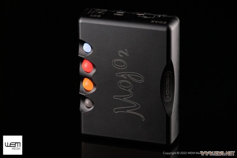 将科技浓缩到可以一手掌握, 但麻雀虽小五脏齐全,Mojo 2 继承了Chord家族的各种特性,比如标志性的滚球操作按键。Mojo 2 为全金属机身,边角打磨圆滑,表面进行了哑光黑色氧化处理,与手机、大屏播放器捆绑时安全系数会高一些,并且拥有良好的触感。CHORD Mojo 2提供了2个3.5mm立体声耳机接口,可以同时使用,方便2个人同时欣赏音乐。