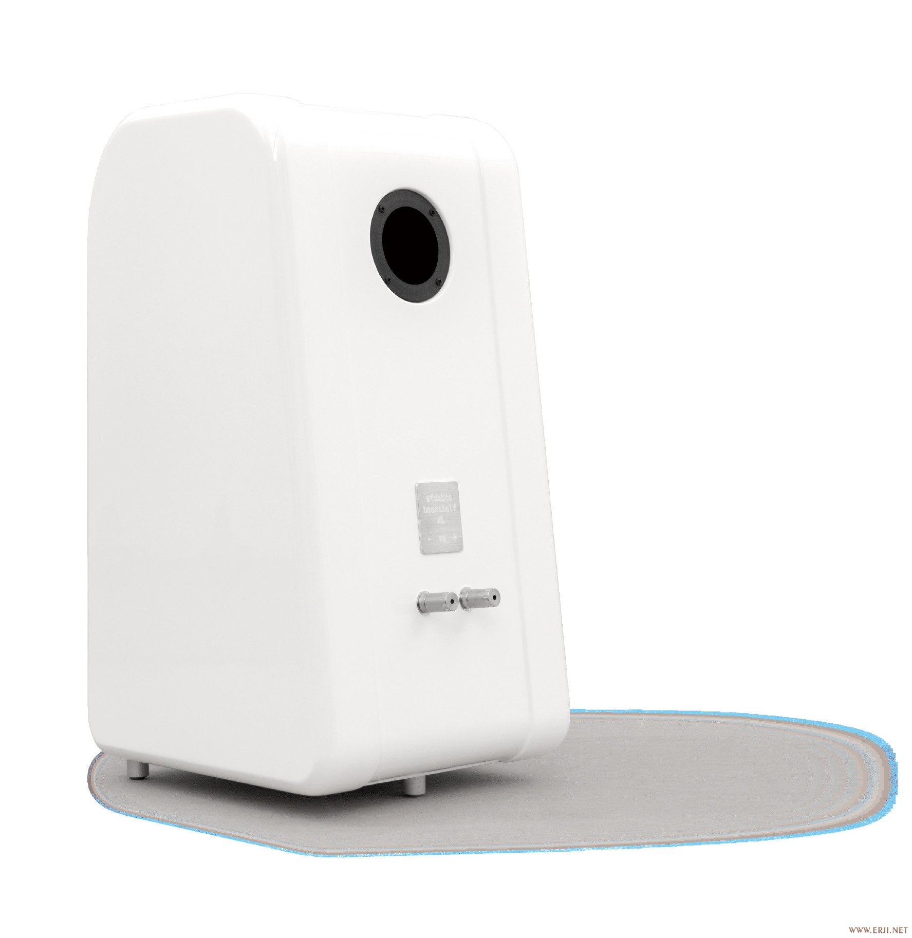 这次把玩的Atomica Bookshelf XL书架式音箱外观上和此前的“球形”、 “葫芦形”书架式音箱有所区别,Bookshelf XL以方正形象示人,但边角位呈现一定弧度,当然这种设计也是出于对压制有害驻波的考量。得益于Bookshelf XL这款音箱,Atomica获得了Open Design Vicenza 2016国际设计大赛一等奖,这是一对拥有经典优雅外观同时具备高标准音效的书架式音箱。
