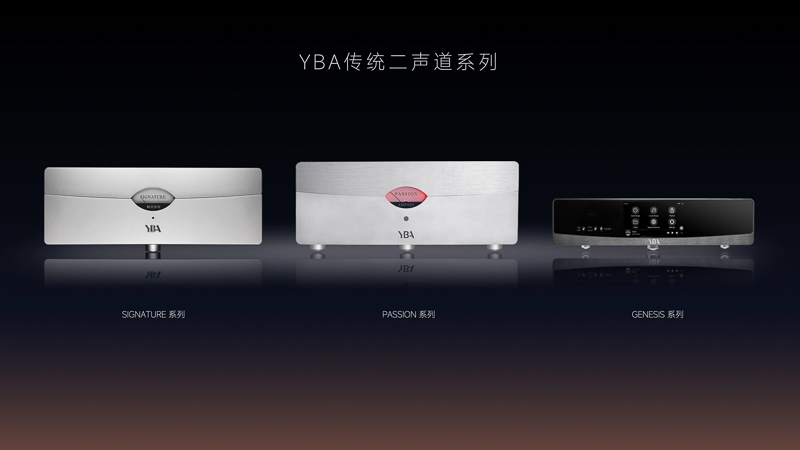 截至目前,YBA在产的系列包括面向二声道场景的SIGNATURE、PASSION和GENESIS系列,以及横跨二声道和桌面领域的DESIGN系列。SIGNATURE系列单件售价超过10万元,在Hi-End领域拥有卓越的影响力,是YBA数十年技术的集大成之作。PASSION是YBA历史最为悠久的一个系列,凭借过硬的品质和流畅细腻的声音审美成为了二声道领域的“常青树”。GENESIS是YBA顺应新时代数字音乐场景需求而推出的系列,融合了便利的使用体验和经典的调音风格。