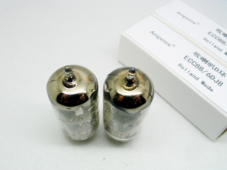 58年吹喇叭D环ECC88/6DJ8一对,荷兰海尔伦原厂生产,同暗码:ㄓ8L 。成色极新净,粉字基本完整,测试配对极佳,实物如图。此管是世界上最好的6DJ8管之一,高频细腻,中频圆润,低频饱满,音乐味极佳。外国音响网站甚至评论这种吹喇叭D环ECC88的音乐性好过德律风根的CCa。