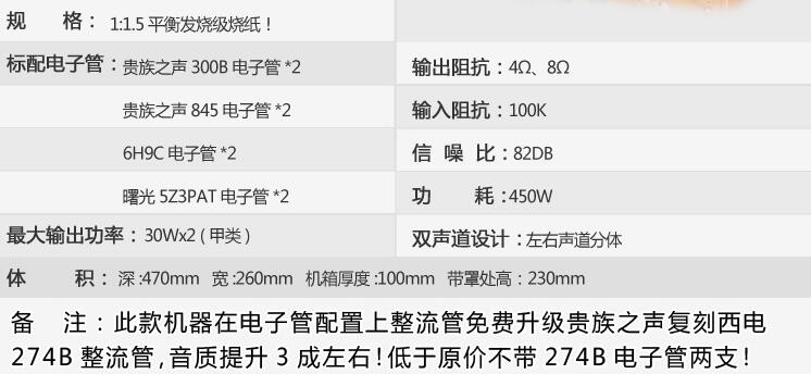 保修期:胆机质保一年 电子管半年