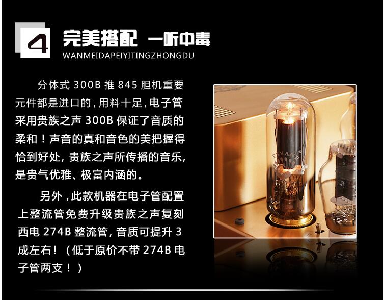 产品名称:出手土豪金分体式300B推845胆机 9500元包德邦物流
