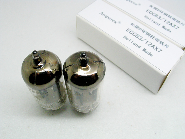 1958年荷兰吹喇叭长屏铜柱D环带铁片ECC83/12AX7一对,飞利浦荷兰海尔伦工厂生产,暗码:ㄓ8G ㄓ8H。成色新净,测试配对极佳,实物如图。安普雷斯ECC83高频细腻,解析力和空气感强烈,低频下潜深,收缩速度快,适合大尺寸音箱系统使用。