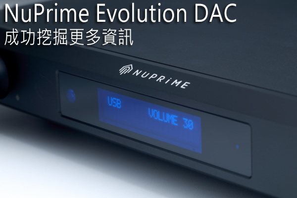 Evolution是先出后级,再出DAC。后级称Evolution One,很是霸气,却也很有道理。因为EVO One后级的输入阻抗高达1M Ohms。其他特点包括线性电源、700KHz的PWM交换频率或者一些氧作上的细节,在这1M Ohms输入阻抗前,都无足轻重了。这很高吗?在Evolution One推出前,NuPrime的扩大机输入阻抗多是47K Ohms,市面上比较高的有Spectral的100K Ohms,Audio Research的200K Ohms,而Evo One却高达1M Ohms之多。这样一来,让前端器材很容易匹配,而且利于再生极微小的讯号。会不会增加噪讯干扰呢?确实有这个风险,但是NuPrime的工程师早就想到了,在技术上克服了这点,使得Evolution One的声音非常乾?、细节丰富,且有满有活力。您可参阅林治宇所撰写Evolution One后级的评论,他也提出了相同的见地。因此,在Evolution One后级上,这的确配得过称为Evolution One—那个进化的扩大机。