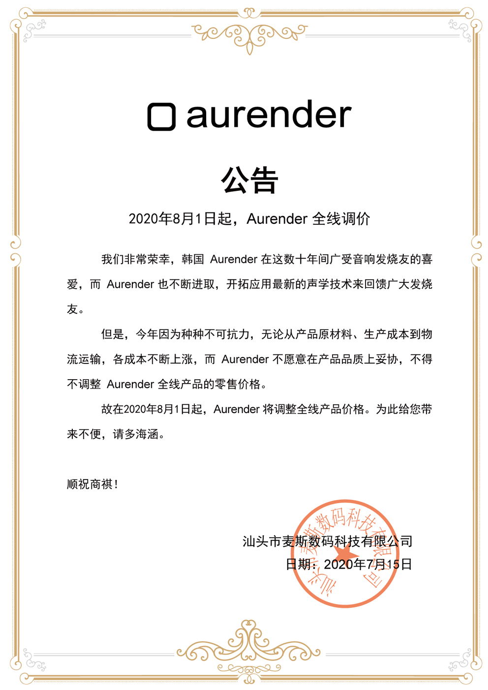 调价公告