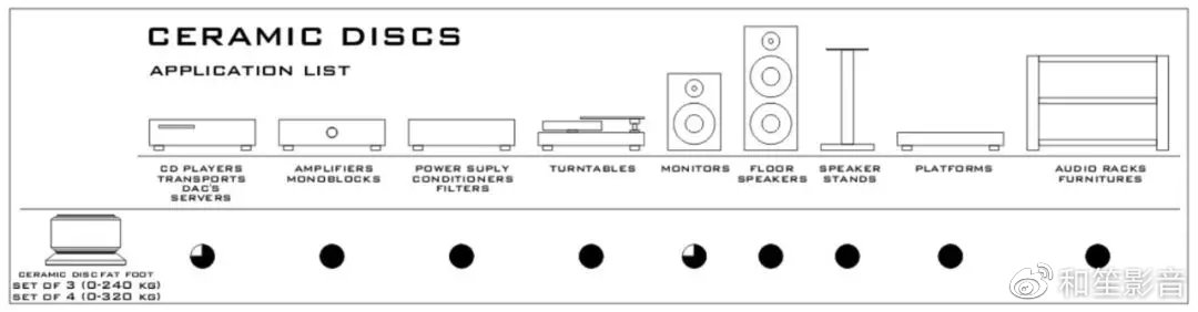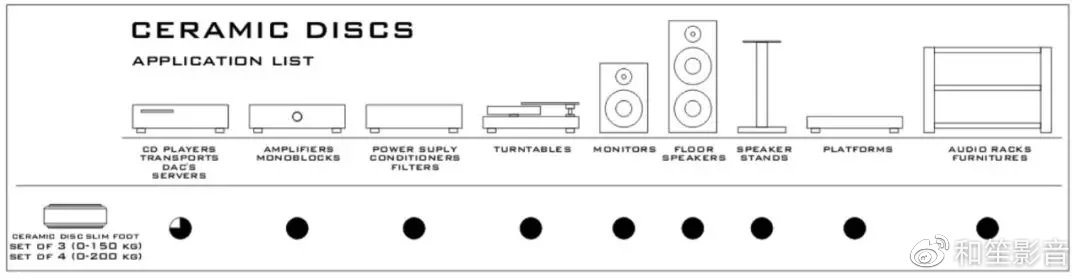 最适合200公斤以下的地板扬声器,半重音频组件,扬声器,唱机转盘,支架,货架,平台和音频家具的最好选择,满足了尽可能的短的脚钉需求。能优秀替代生产者提供的音频组件、扬声器等原有脚钉。通过精密的数控加工,由超高硬度的陶瓷球组成,能保证最有效抑制不必要共振和最佳聆听体验。
