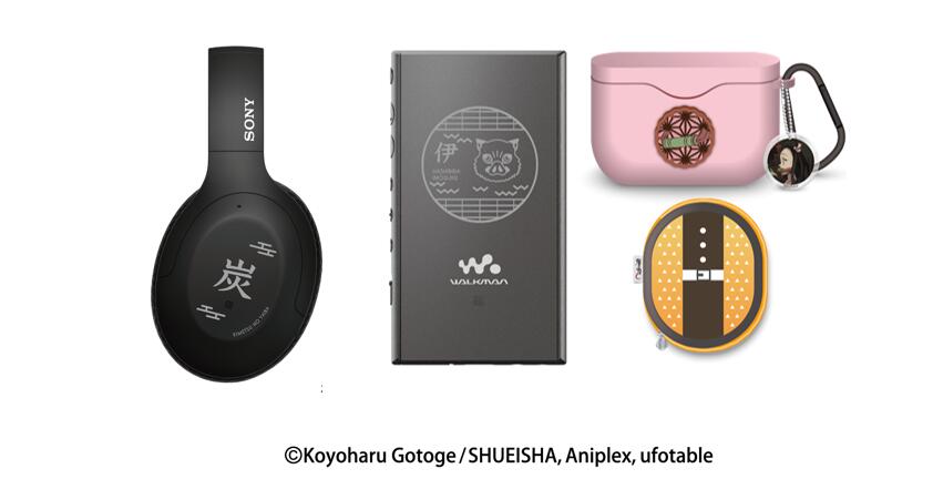 索尼高解析度无线降噪耳机WH-H910N、索尼高解析度安卓播放器 NW-A105与 《鬼灭之刃》IP联名刻印版及周边产品WH-H910N保护套和真无线降噪耳机WF-1000XM3硅胶保护套示意图