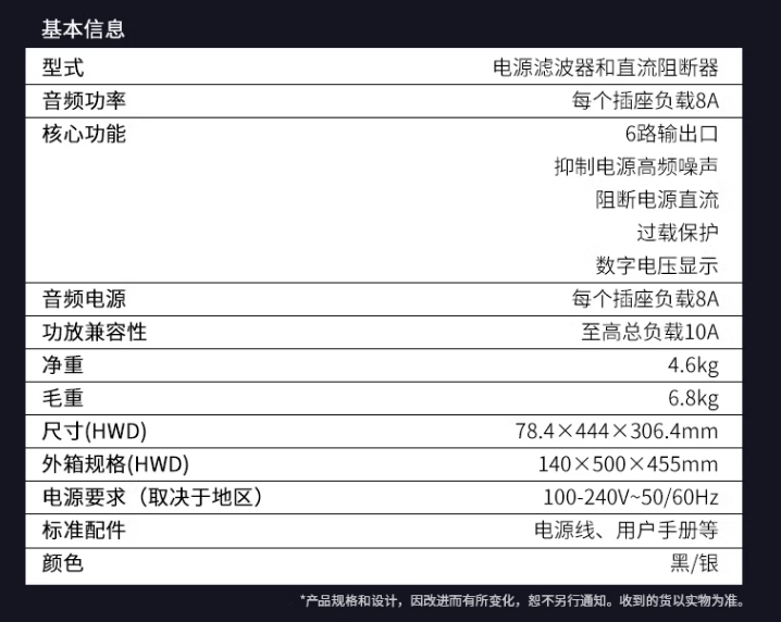 另外DCBLOCK6配备有6条高品质的电源线作为配套使用,正常要求的话基本就减少了发烧电源线的成本投入。音响系统加上傲立的DC BLOCK 6之后,电源噪声得到了明显的抑制,声音听感也更清晰自然。聊到这里你是否也行动了呢。